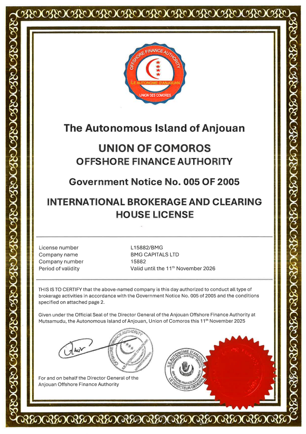 This License Verification page is provided as a service to verify the present licensing status of the Company and Website named above , who operates under license reference L15882/BMG Anjouan Corporate Services