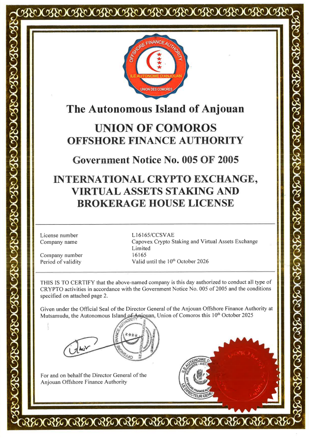 Company name : Capovex Crypto Staking and Virtual Assets Exchange