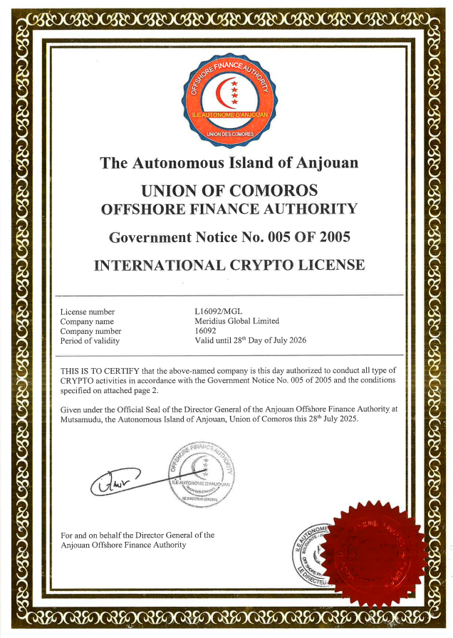 Anjouan Corporate Services License Certificate