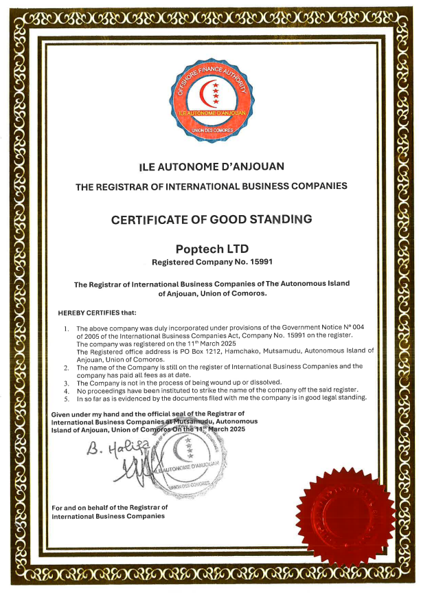 For authenticity, make sure that the url of this website starts with Anjouan Corporate Services.com/verification. If you are not sure, please check the licensee register on AnjouanCorporateServices.com