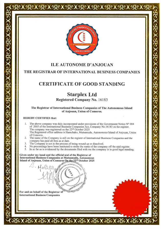 For authenticity, make sure that the url of this website starts with Anjouan Corporate Services.com/verification. If you are not sure, please check the licensee register on AnjouanCorporateServices.com