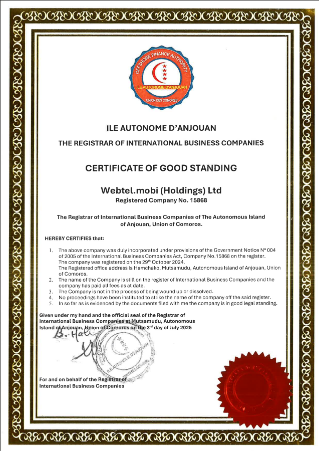 For authenticity, make sure that the url of this website starts with Anjouan Corporate Services.com/verification. If you are not sure, please check the licensee register on AnjouanCorporateServices.com