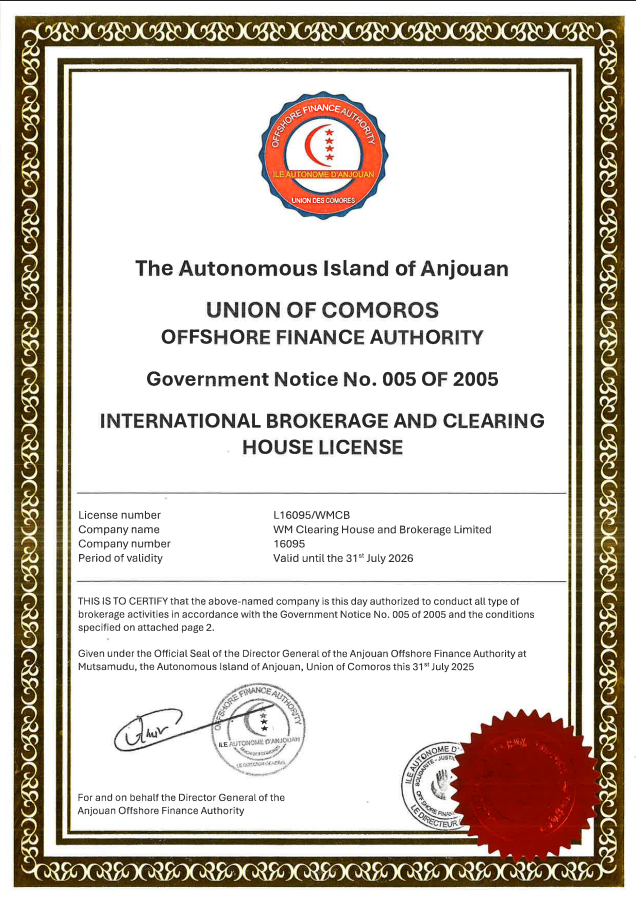 This License Verification page is provided as a service to verify the present licensing status of the Company and Website named above , who operates under license reference L16095/WMCB Anjouan Corporate Services